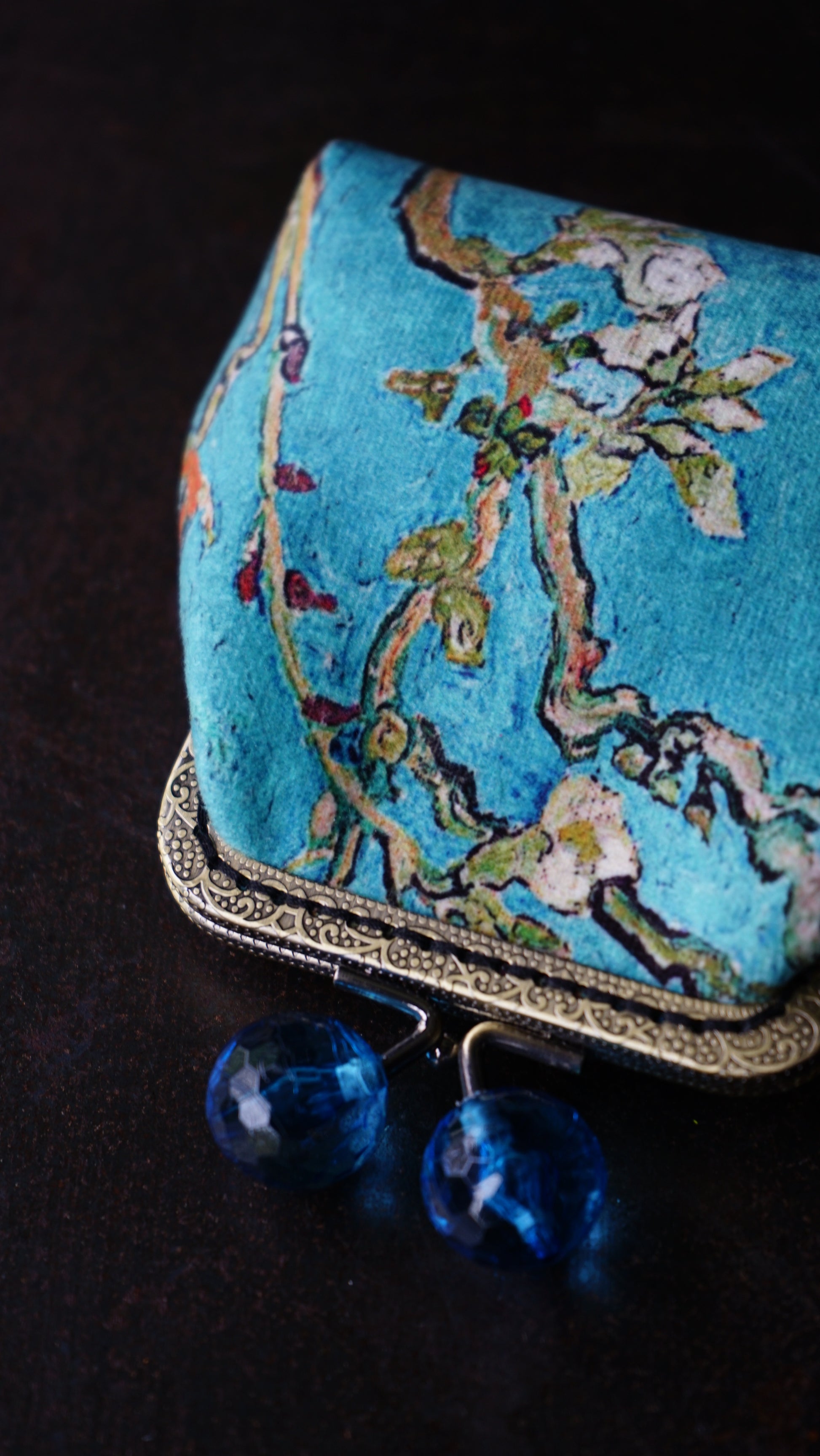 - Chiusura: A borsellino con telaio in ottone e pomelli sfaccettati