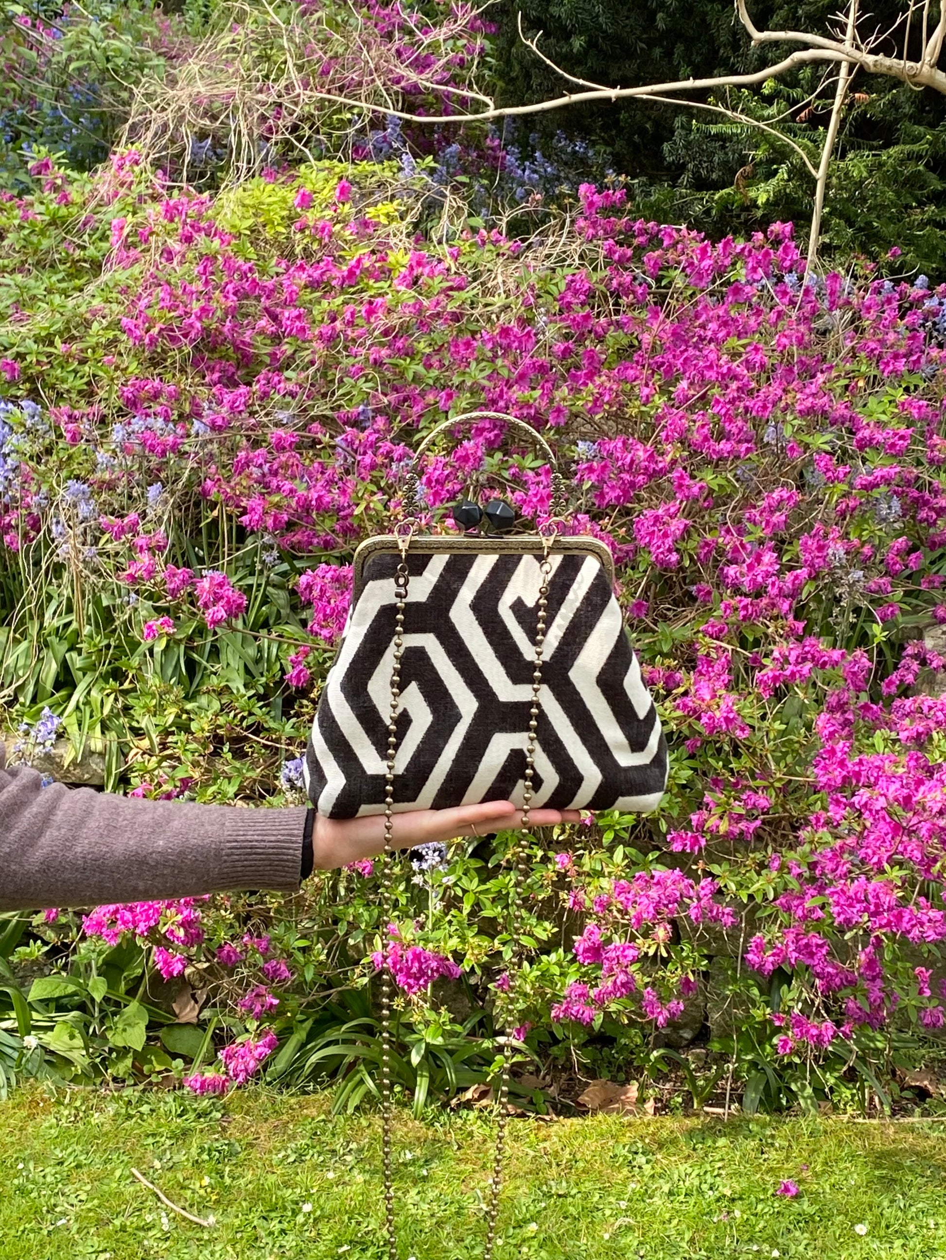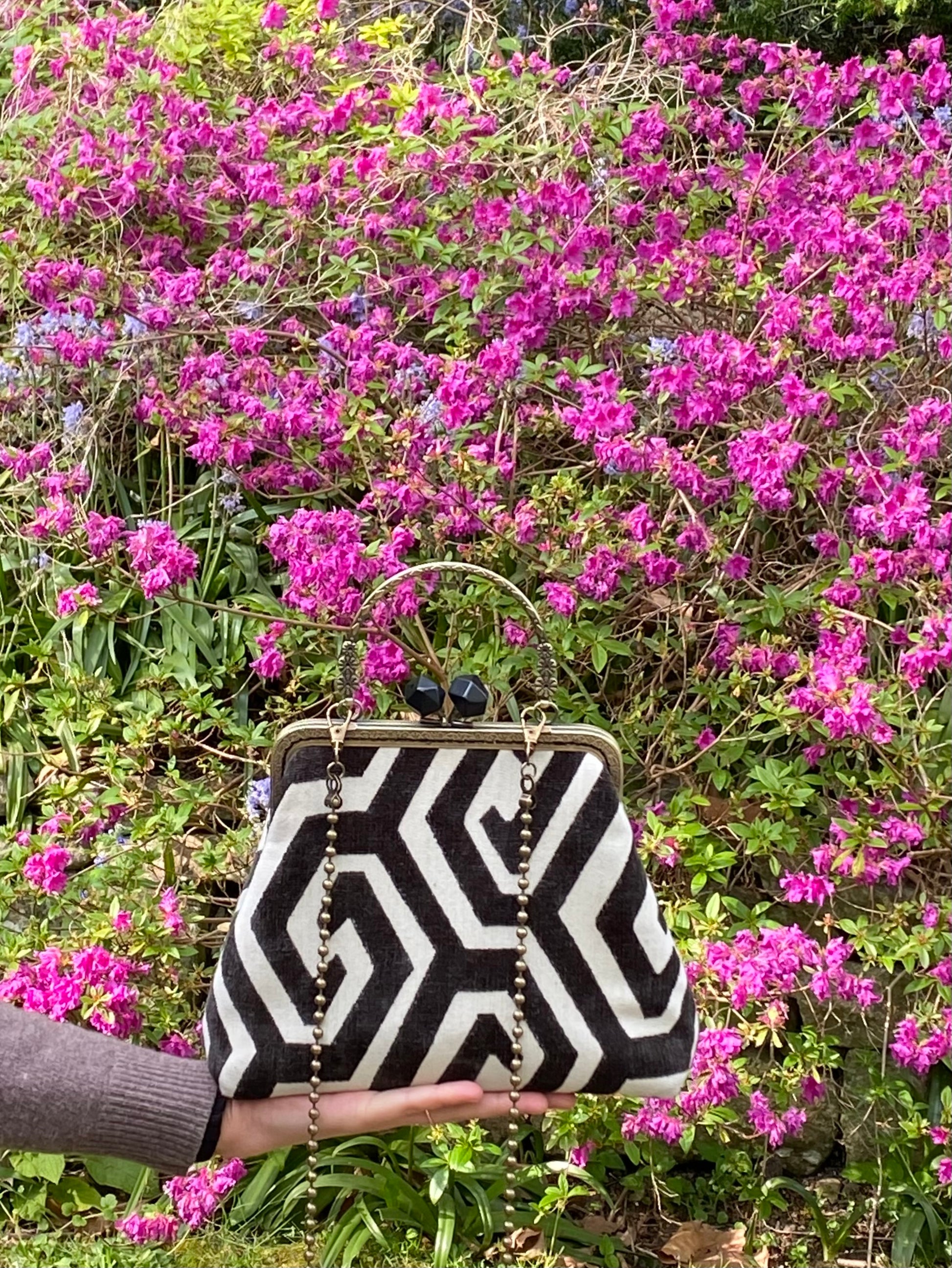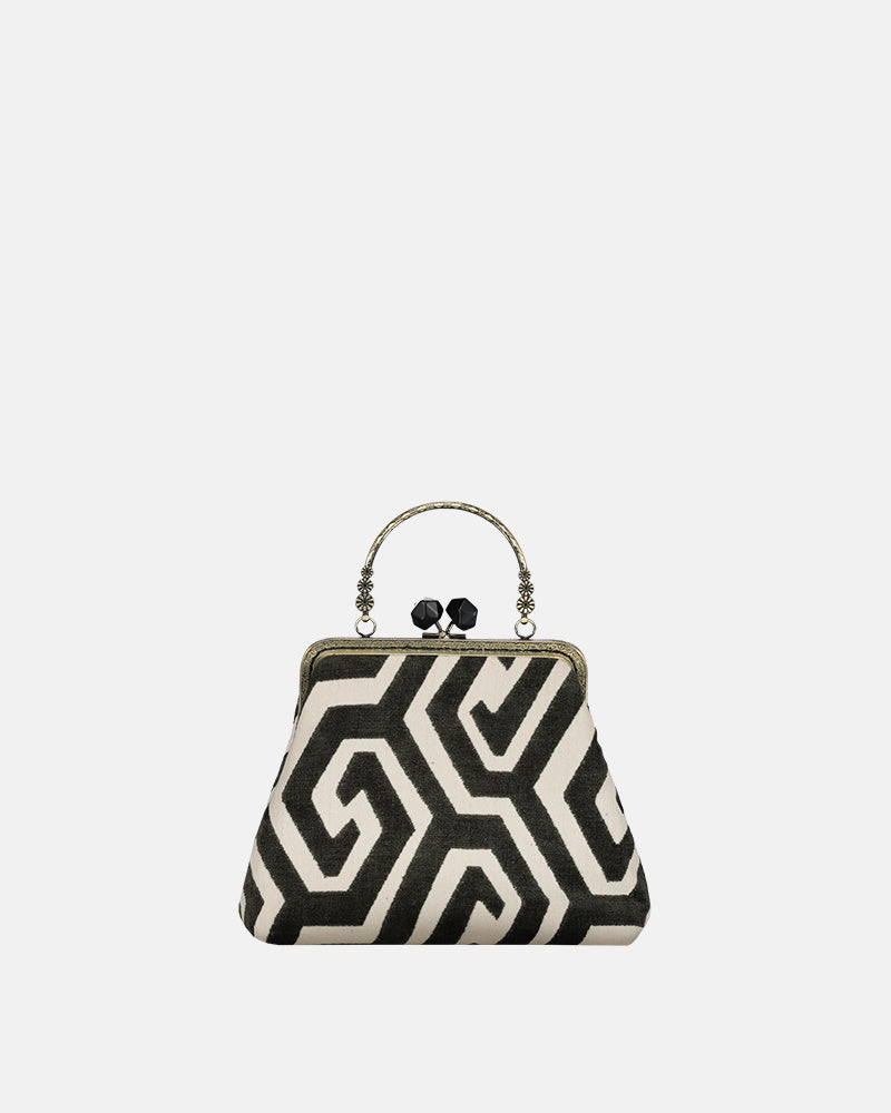 - Chiusura: A borsellino con telaio in ottone e pomelli sfaccettati