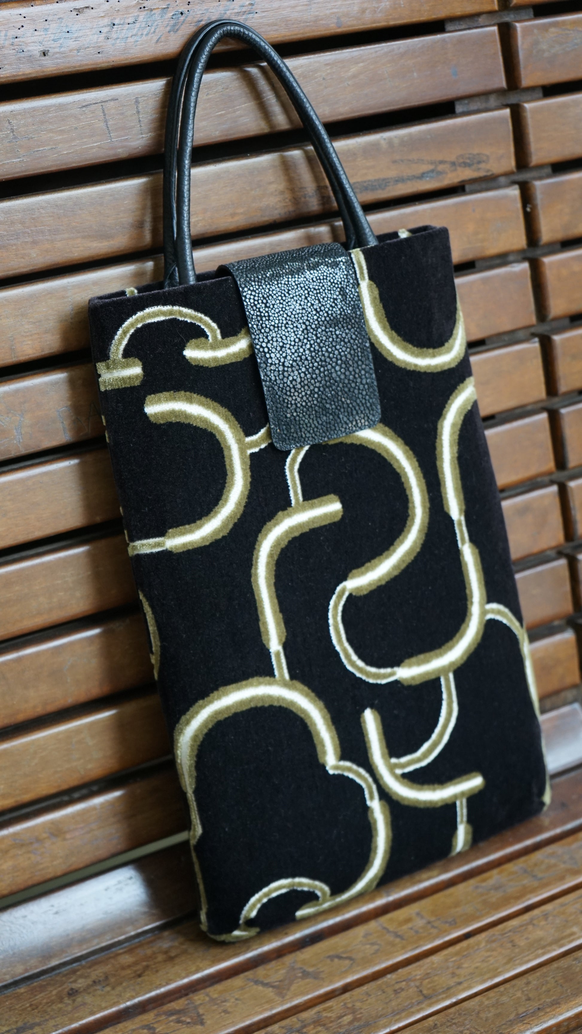 - Materiale: tessuto d'arredamento in velluto nero con dettagli in verde