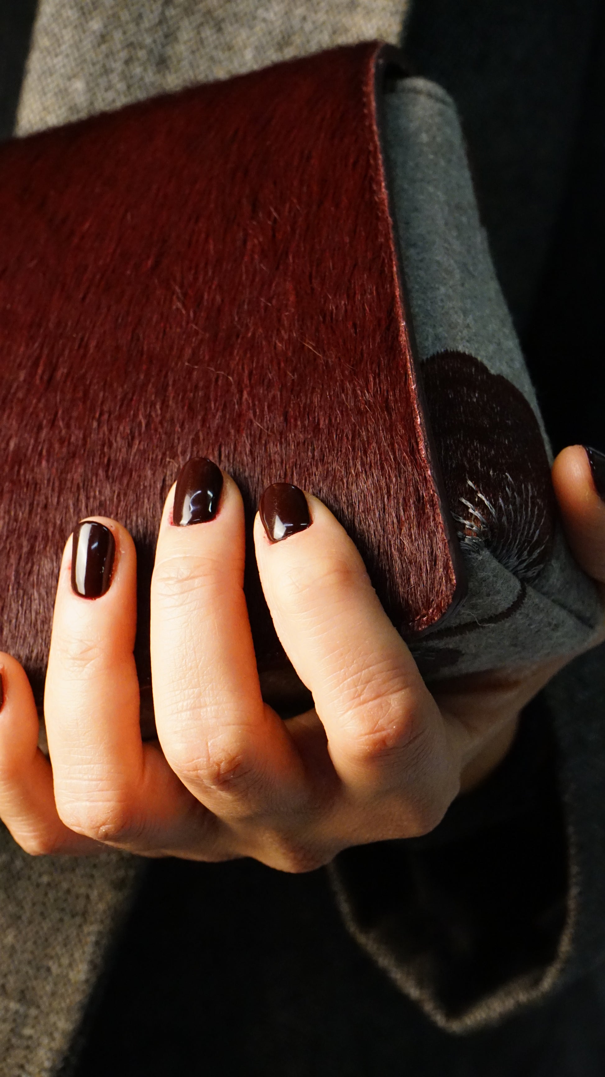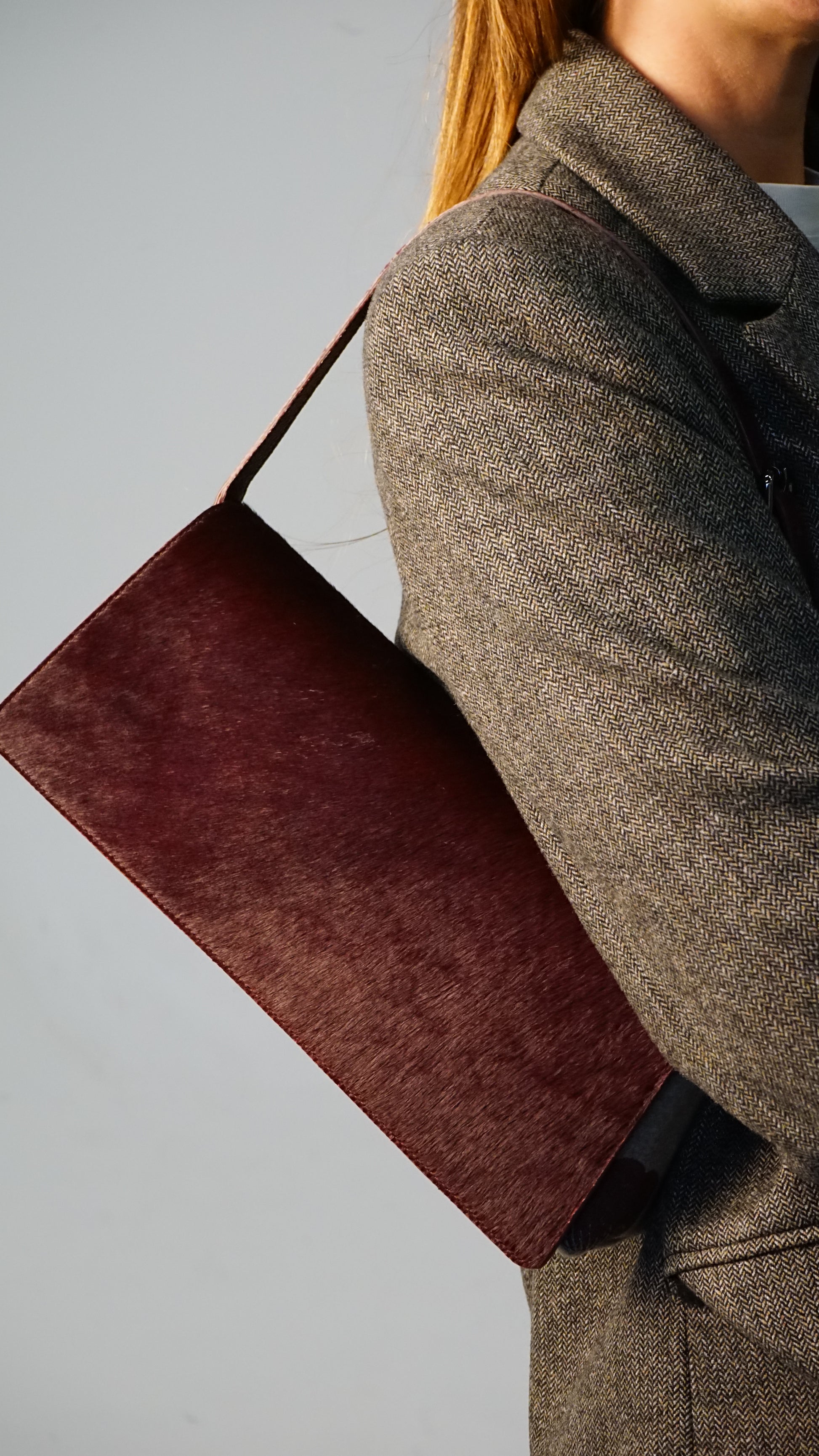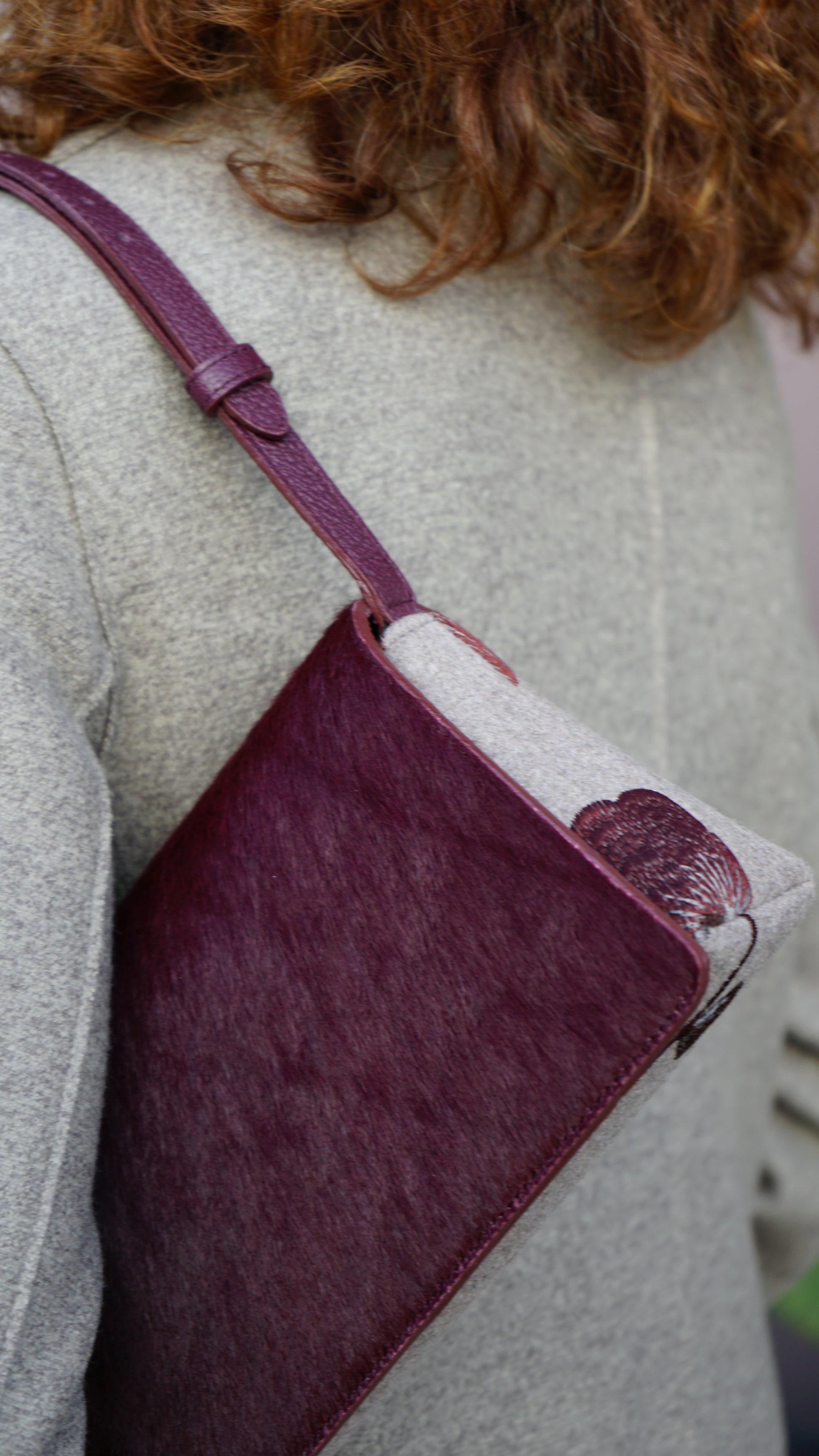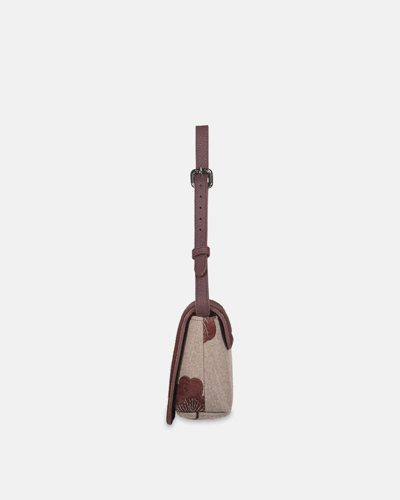 - BASE E TRACOLLA: tessuto misto cachemire con ricami floreali. Pelle martellata Burgundy.
