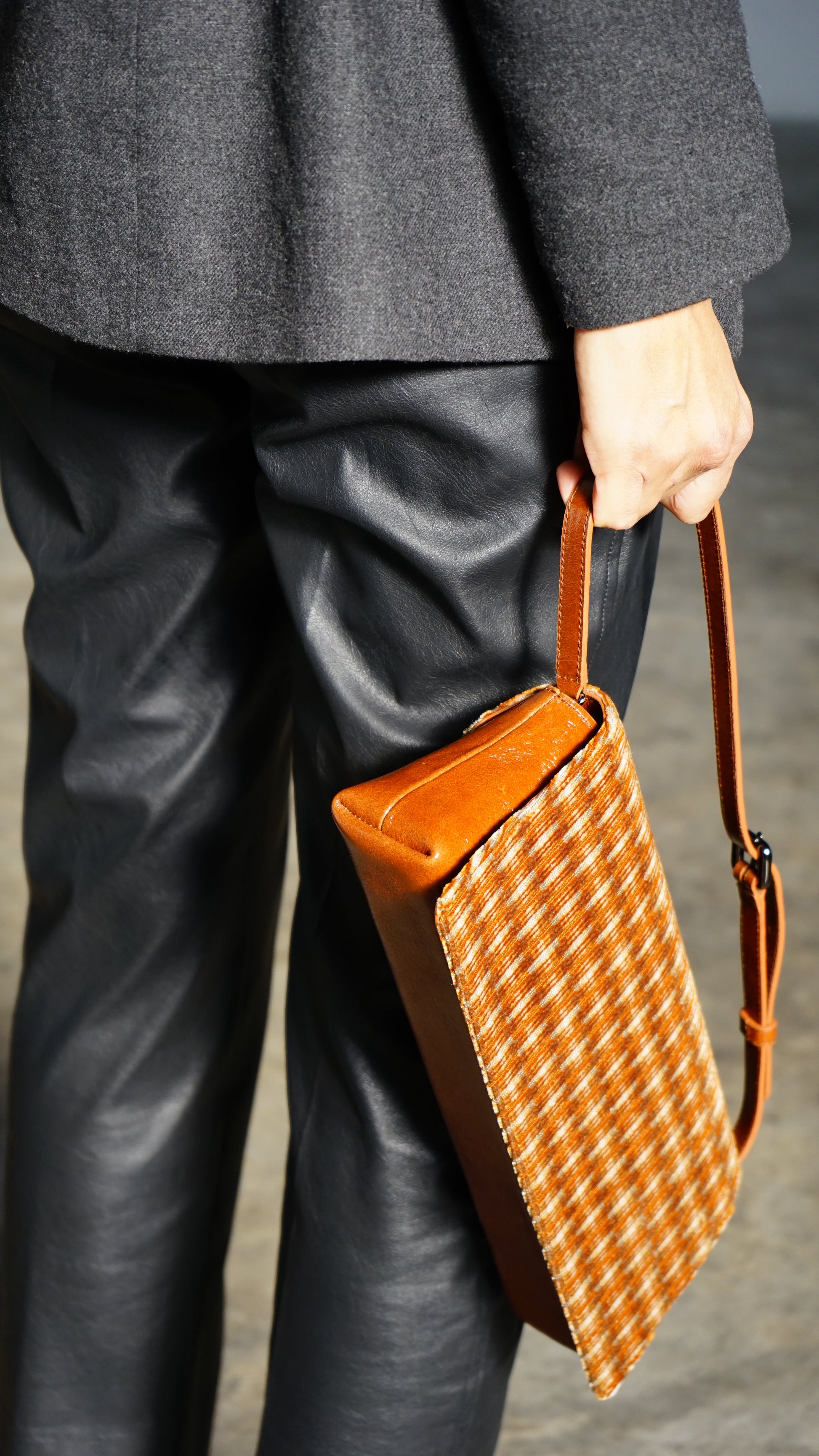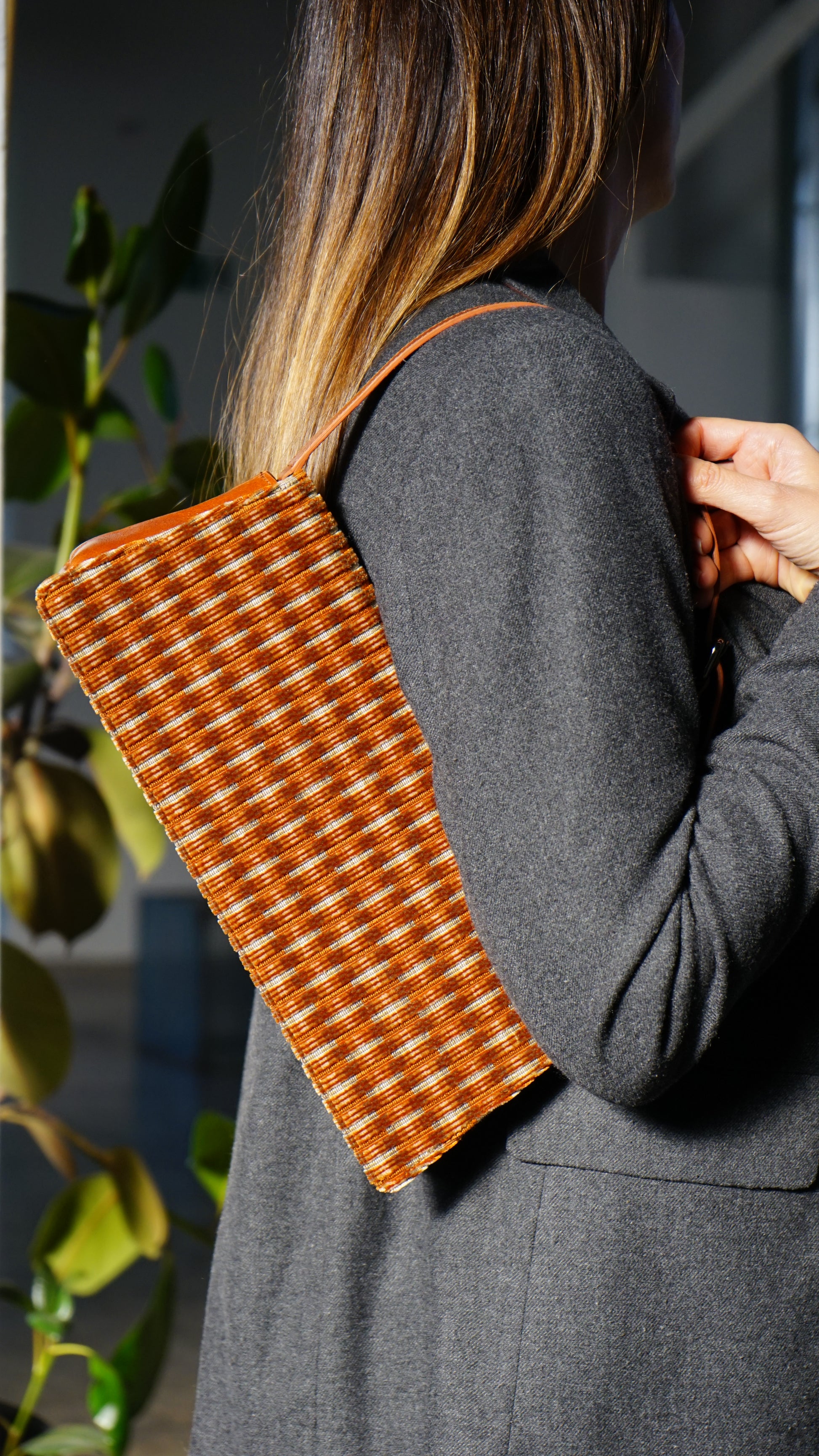 - BASE E TRACOLLA: 100% pelle arancione effetto glossy